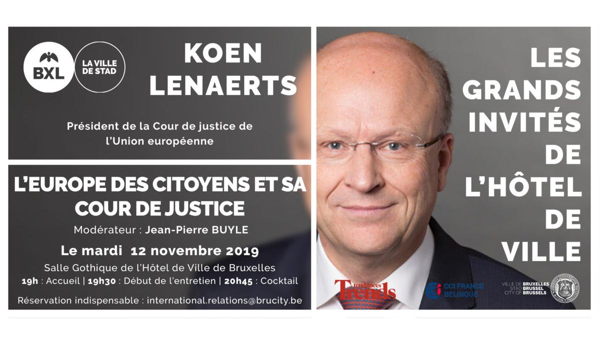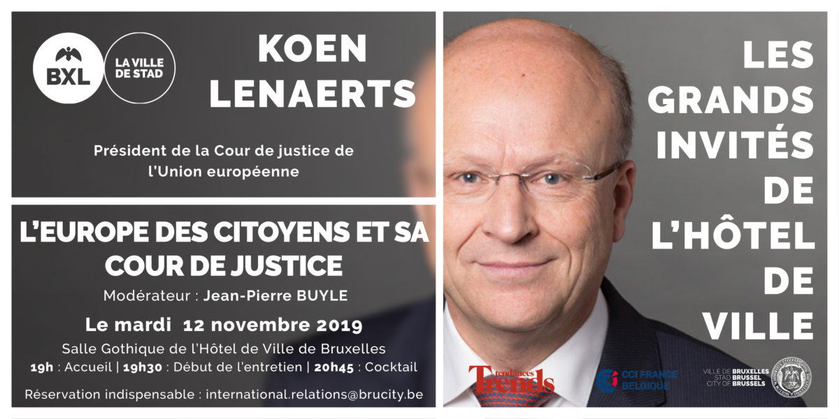 La Ville de Bruxelles a le plaisir de vous convier le mercredi 12 novembre à la conférence des « Grands invités de l’Hôtel de Ville », qui mettra à l’honneur Koen LENAERTS, Président de la Cour de justice de l’Union européenne. Jean-Pierre BUYLE en sera le modérateur.