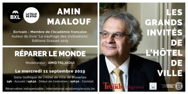 La ville de Bruxelles invite à la rentrée l’académicien Amin Maalouf, écrivain et membre de l’Académie française, auteur du livre “Le naufrage des civilisations” (Editions Grasset 2019).