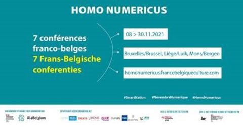 Du 8 au 30 novembre 2021, l’Ambassade de France en Belgique, le SPF BOSA, AI4Belgium et leurs partenaires organisent un cycle de conférences « Homo Numericus », destiné à renforcer les échanges bilatéraux sur le sujet numérique. Il prendra la forme d’une série de 7 débats de haut niveau qui viendront interroger la manière dont le numérique influe sur nos sociétés contemporaines et transforme notre rapport à l’éducation, au travail, à la politique et à la culture :