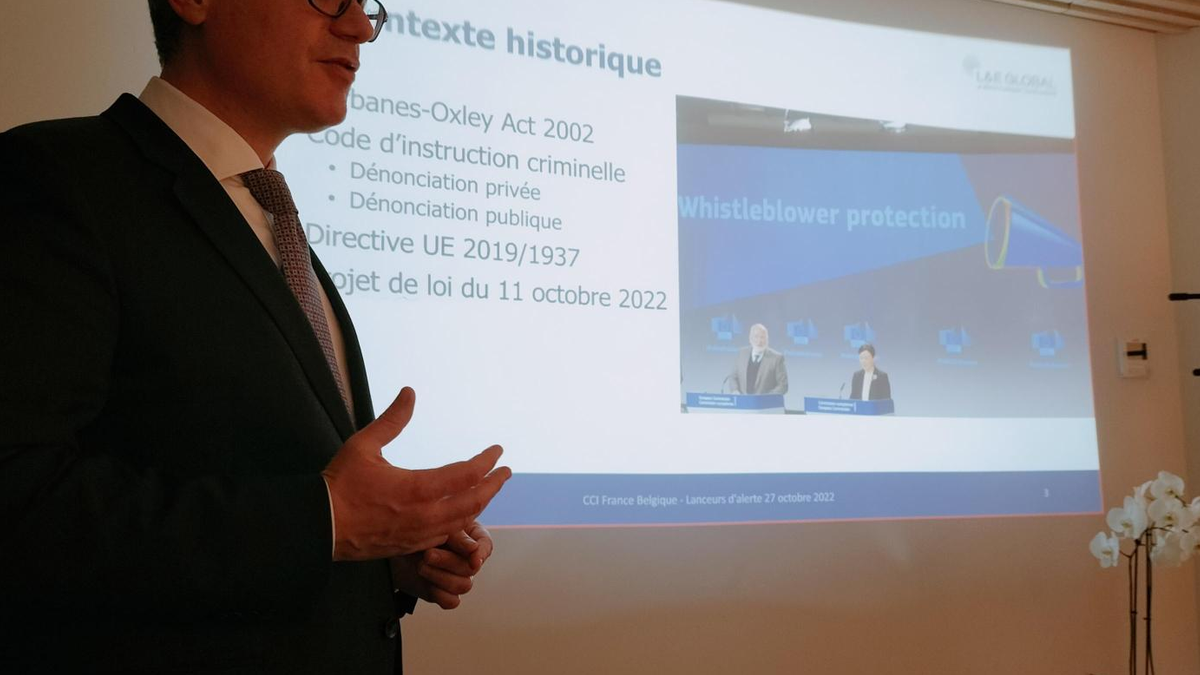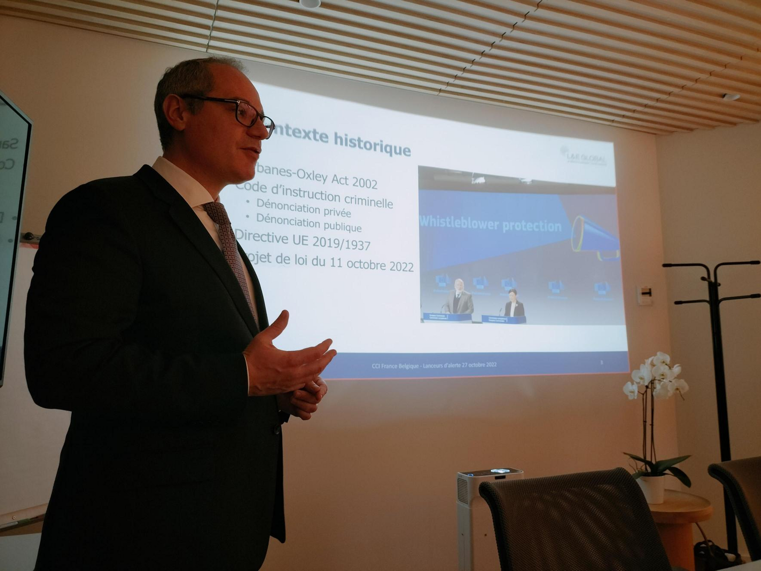 Jeudi 27 octobre 2022, la CCI France Belgique et le cabinet Van Olmen & Wynant ont organisés une conférence sur le thème : « lanceurs d’alerte : opportunité ou risque pour les entreprises ? », animée par Nicolas Simon, avocat associé et Manon Bonnet, avocate collaboratrice.