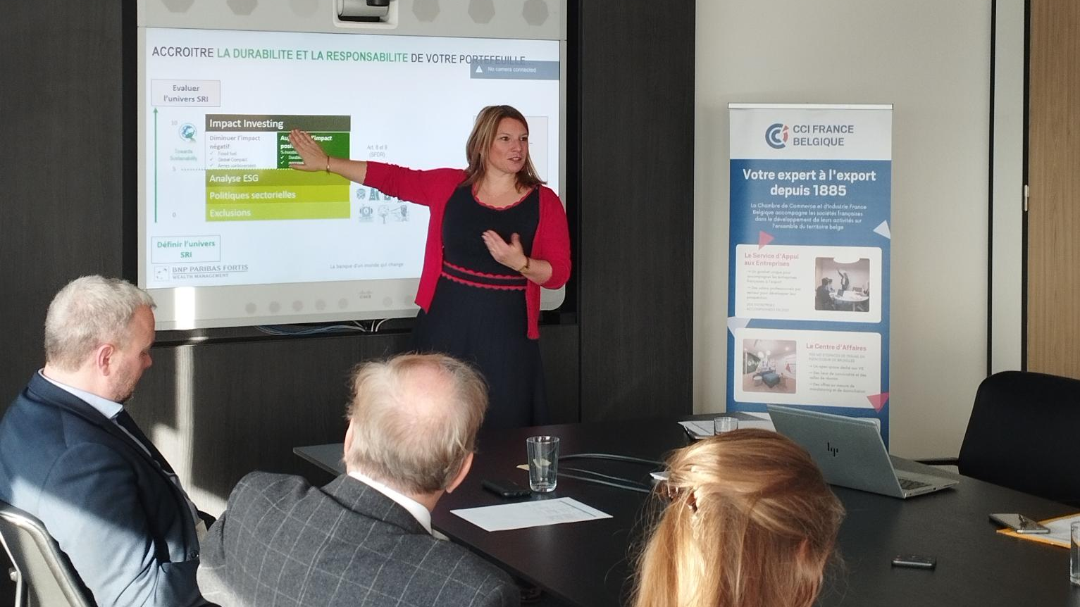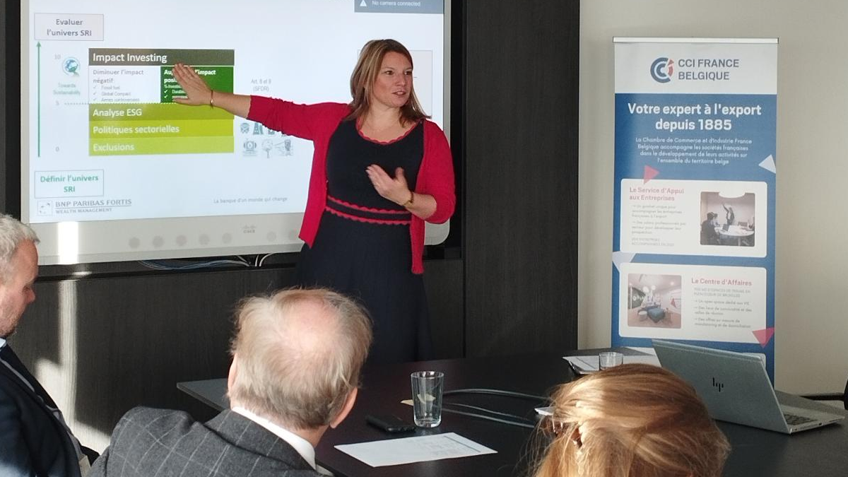 L’intervenante, Caroline PALUMBO, Investment communication manager chez BNP Paribas Fortis, a présenté les différentes solutions pour accroître la durabilité et la responsabilité de son portefeuille d’investissement. Sa présentation a mis l’accent sur la dimension pédagogique, centrée sur le dialogue et l’engagement, pour amener à cette transition.