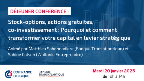 Durant cette présentation, Matthieu Sabonnadiere (Banque Transatlantique) et Sabine Colson (Wallonie Entreprendre) partageront leurs conseils pratiques et retours d’expérience pour comprendre pourquoi et comment mettre en œuvre ces dispositifs dans un contexte franco-belge, en les alignant sur la stratégie et la culture de l’entreprise.
