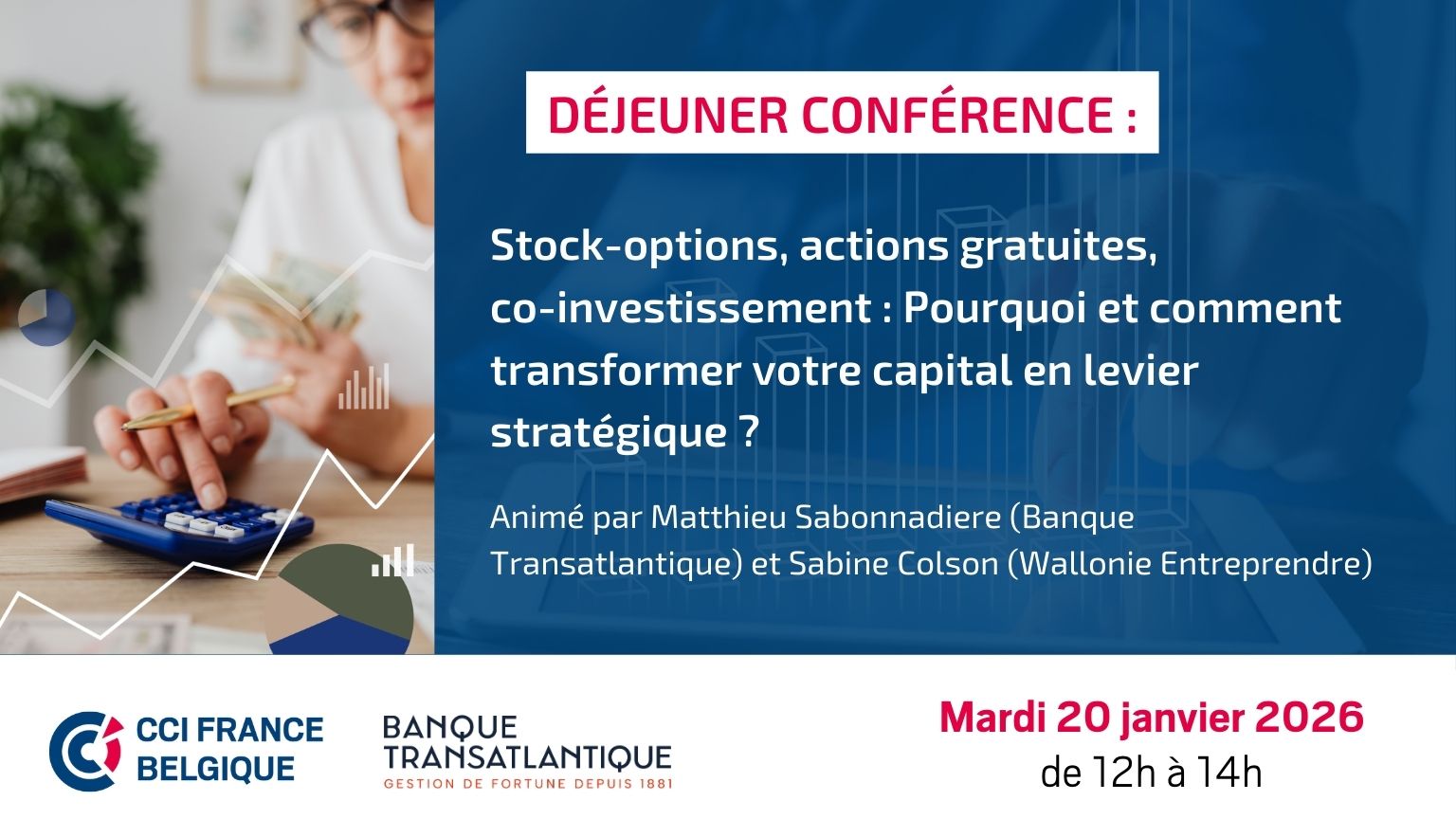 Durant cette présentation, Matthieu Sabonnadiere (Banque Transatlantique) et Sabine Colson (Wallonie Entreprendre) partageront leurs conseils pratiques et retours d’expérience pour comprendre pourquoi et comment mettre en œuvre ces dispositifs dans un contexte franco-belge, en les alignant sur la stratégie et la culture de l’entreprise.