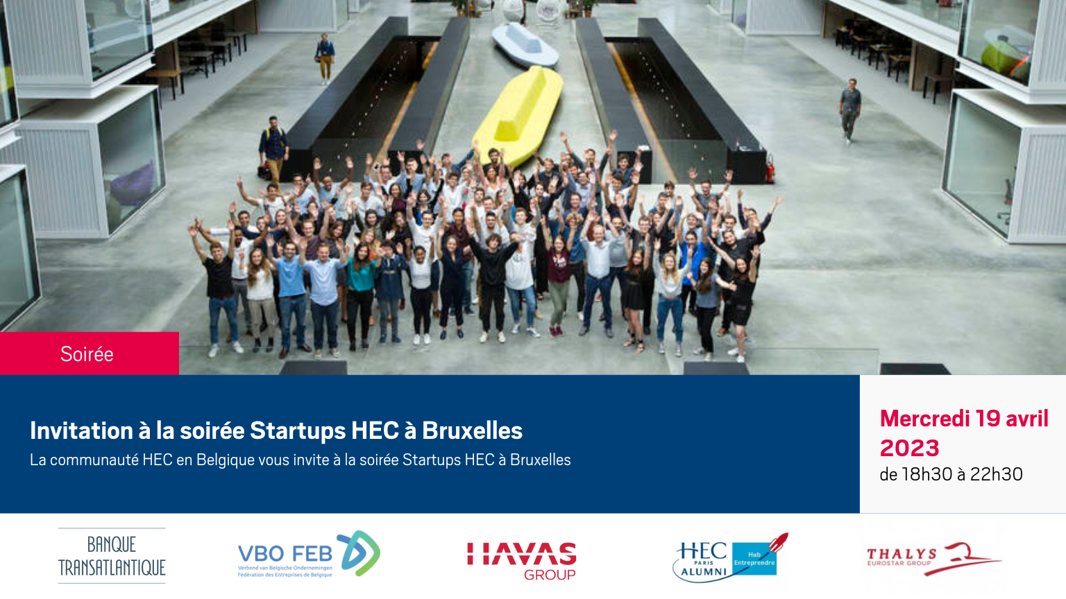 La communauté HEC en Belgique vous invite à la soirée Startups HEC à Bruxelles le mercredi 19 avril 2023 de 18h30 à 22h30