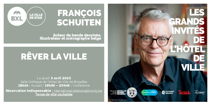 La Ville de Bruxelles a le plaisir de vous convier le 20 mars 2025 à la conférence "Rêver la ville" animée par François Schuiten, auteur de bande dessinée, illustrateur et scénographe belge.