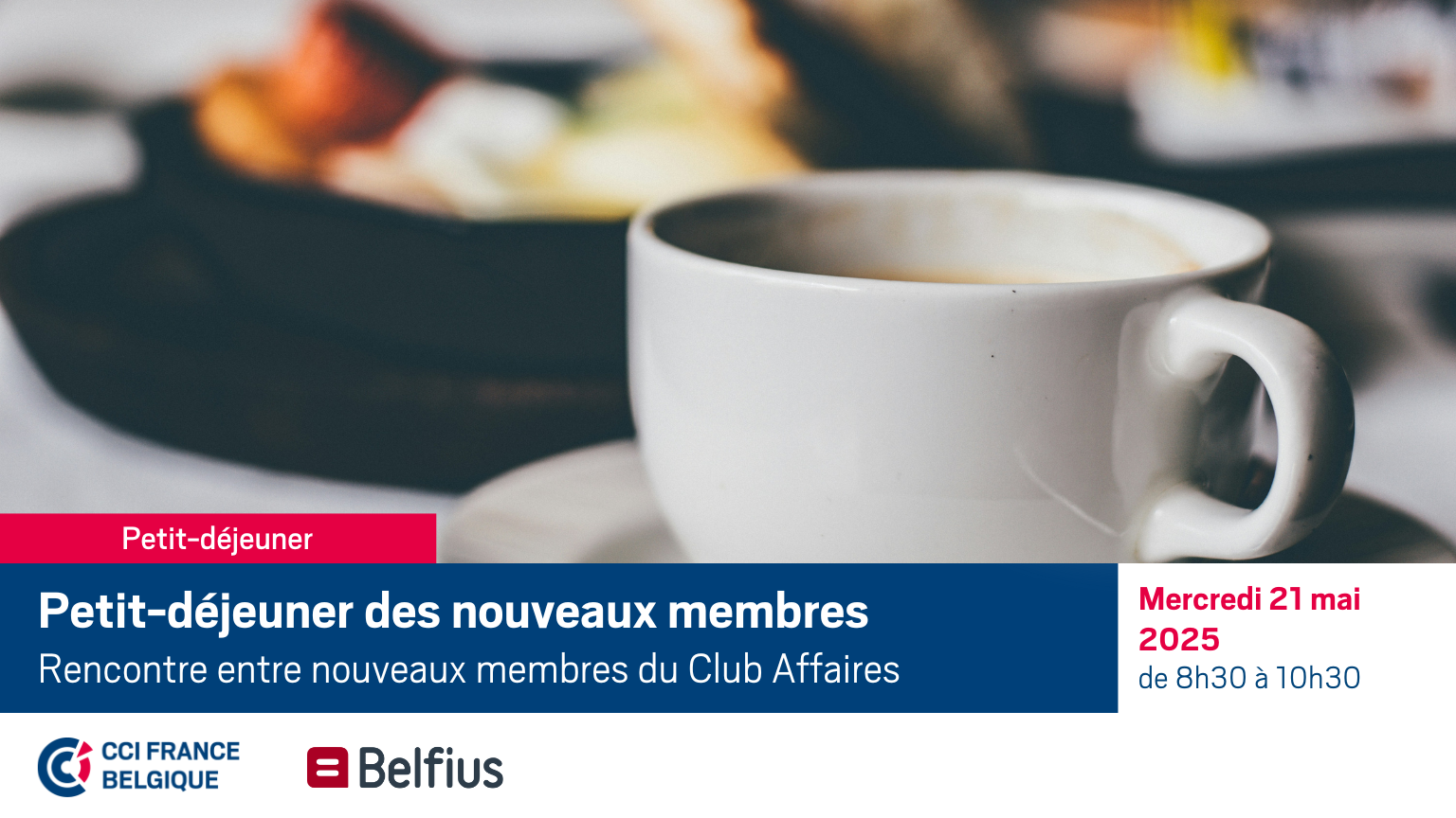 La CCI FRANCE BELGIQUE propose, en partenariat avec Belfius, à ses nouveaux membres de venir se rencontrer et de découvrir les avantages du Club Affaires. Profitez de cette occasion pour identifier vos interlocuteurs du Club Affaires, de networker avec les nouveaux membres et de découvrir le centre d'affaires de la Chambre.