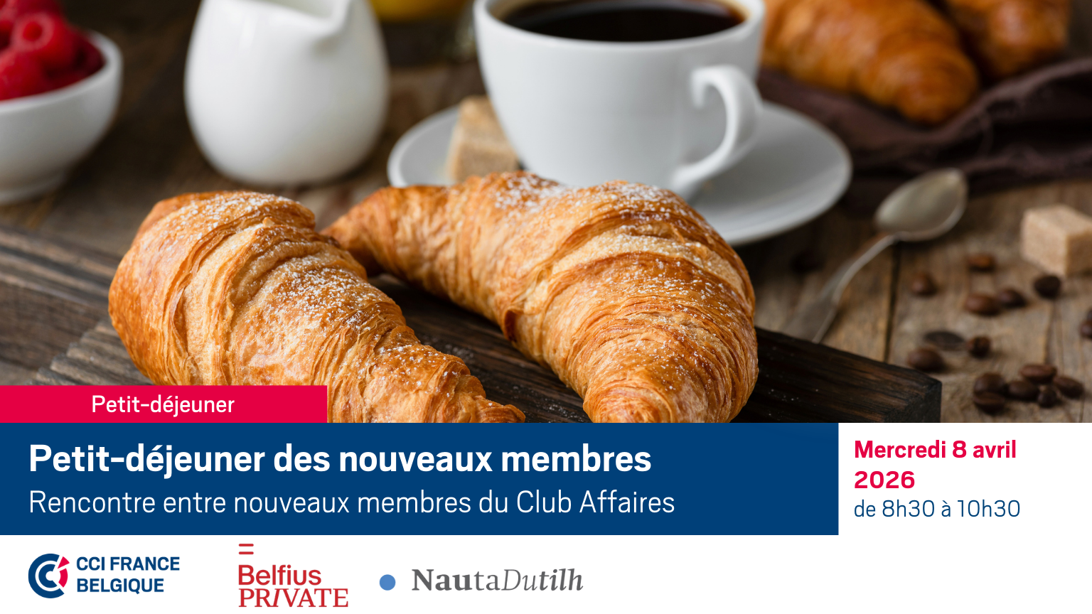 La CCI FRANCE BELGIQUE propose, en partenariat avec Belfius Private et NautaDutilh, à ses nouveaux membres de venir se rencontrer et de découvrir les avantages du Club Affaires. Profitez de cette occasion pour identifier vos interlocuteurs du Club Affaires, de networker avec les nouveaux membres et de découvrir le centre d'affaires de la Chambre.