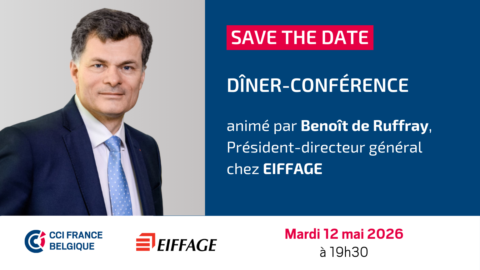 Le 12 mai prochain, la CCI France Belgique aura le plaisir d'accueillir Monsieur Benoît de Ruffray, Président-directeur général chez EIFFAGE, à l'occasion d'un dîner-conférence exclusif.