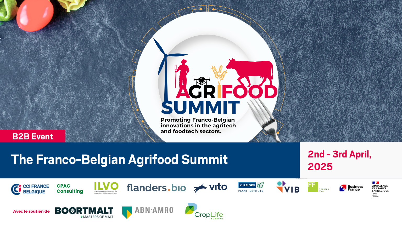 To meet the new challenges in agriculture and agrifood, the CCI France Belgique, in collaboration with several Belgian institutes, is organizing the Franco Belgian Agrifood Summit.