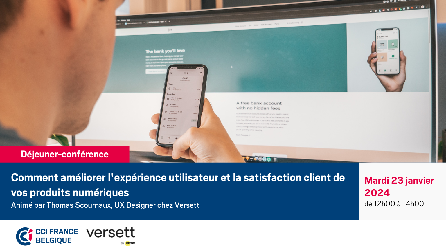 Déjeuner-Conférence : "Comment améliorer l'expérience utilisateur et la satisfaction client de vos produits numériques" animé par Thomas Scournaux UX Designer chez Versett by CBTW