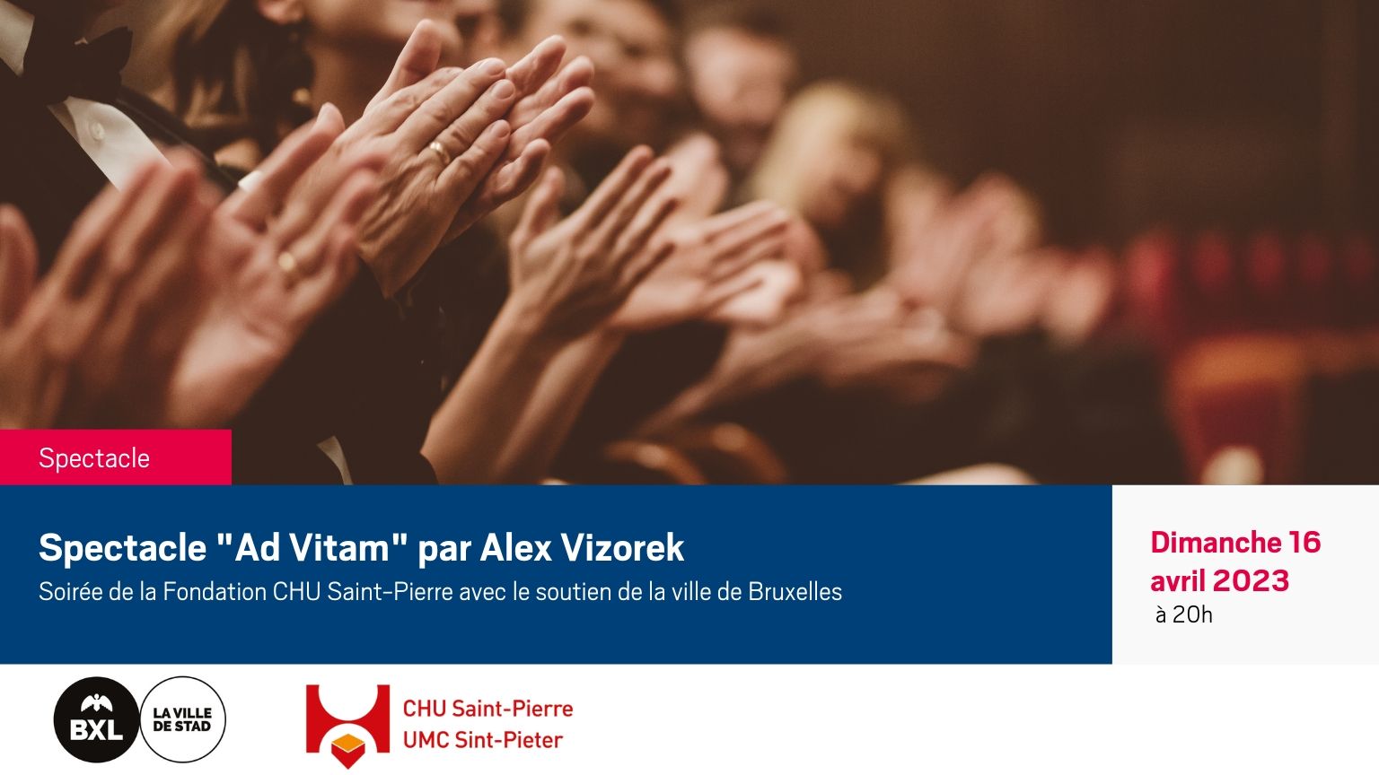 La Fondation CHU Saint-Pierre avec le soutien de la Ville de Bruxelles vous propose de participer au spectacle "Ad Vitam" de Alex Vizorek.
